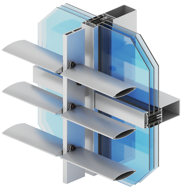 - facade-mounted aluminium solar shading devices; to be installed on facades, on mullion-transom curtain walls