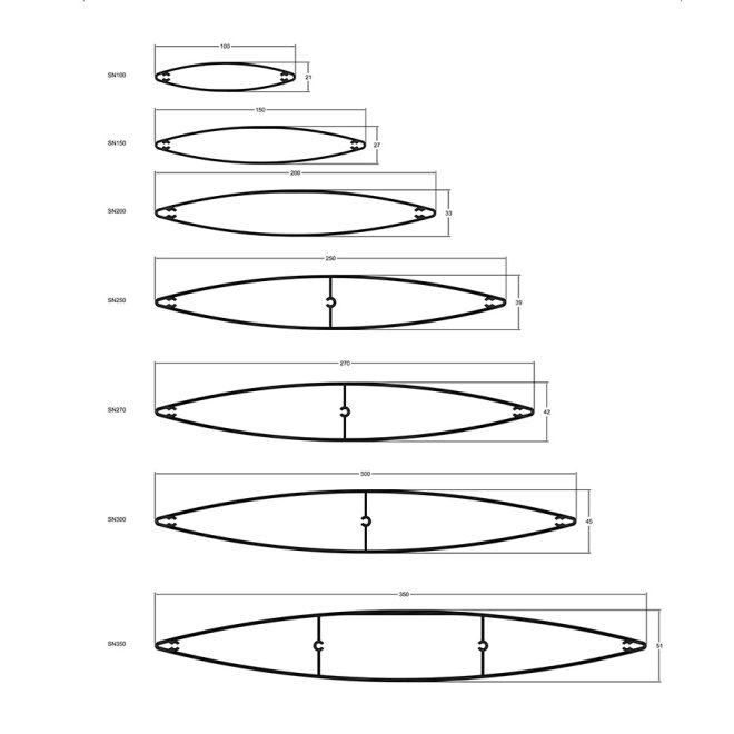 - shading devices available in many sizes: 100, 150, 158, 200, 250, 270, 300 and 350 mm